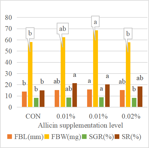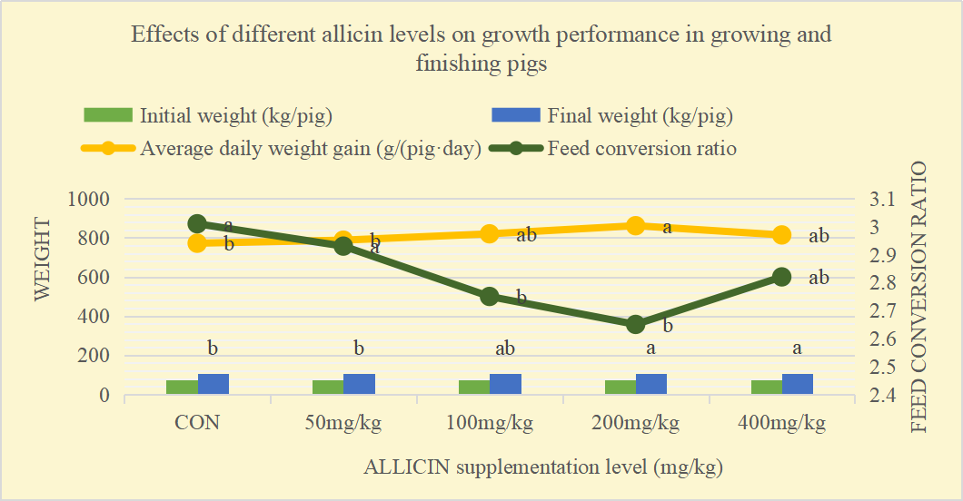 Vim nws zoo heev antibacterial thaj chaw,allicinyog dav siv nyob rau hauv nqaij qaib thiab tsiaj daim ntaub ntawv. Kev tshawb fawb qhia tias ntxivallicinrau cov nqaij qaib noj muaj txiaj ntsig zoo hauv kev txhim kho kev loj hlob thiab kev tiv thaiv kab mob. (* sawv cev rau qhov sib txawv tseem ceeb piv rau pawg tswj hwm;**sawv cev rau qhov sib txawv tseem ceeb piv rau pawg tswj hwm, tib yam hauv qab no)